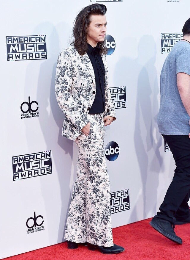 This may be biased because Harry is a huge inspiration to me for fashion (and just life in general). And sure, he was compared to an IKEA couch when he wore this to the 2015 AMA's. But I would like to see someone else pull that off. This white, gray, and black patterned suit paired with a black button up was just the beginning of his iconic patterned suits.